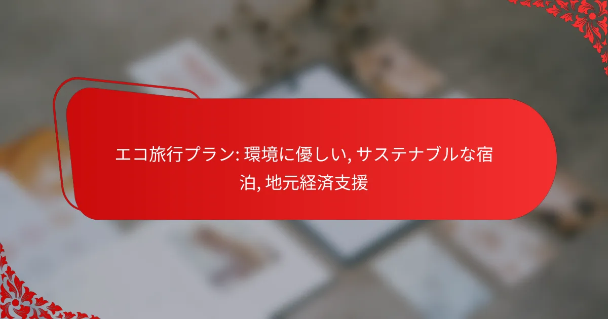 エコ旅行プランは、環境に優しい宿泊施設や地元経済を支援するアクティビティを組み合わせた旅行のことです。具体的には、持続可能な観光地を訪れ、地域の文化や自然を尊重しながら楽しむことが求められます。