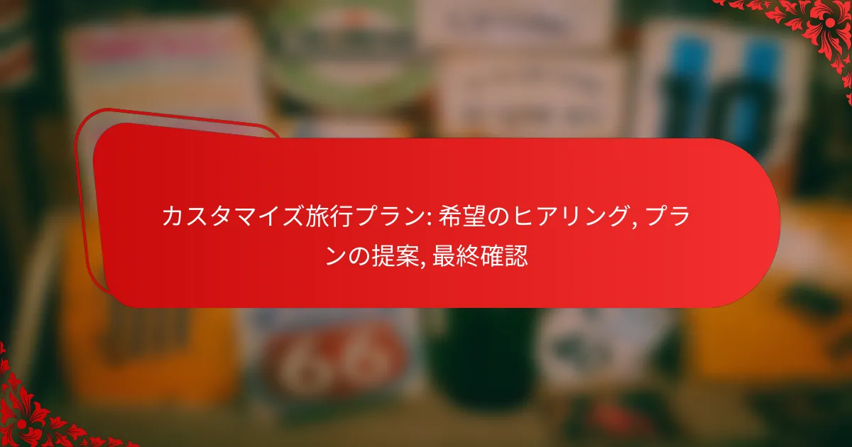 カスタマイズ旅行プランは、顧客の個別ニーズに応じた特別な旅行体験を提供することを目的としています。最初に希望のヒアリングを行い、顧客の期待や好みを把握した上で、具体的なプランを提案します。最終確認を通じて、顧客の満足度を高めるための調整を行います。