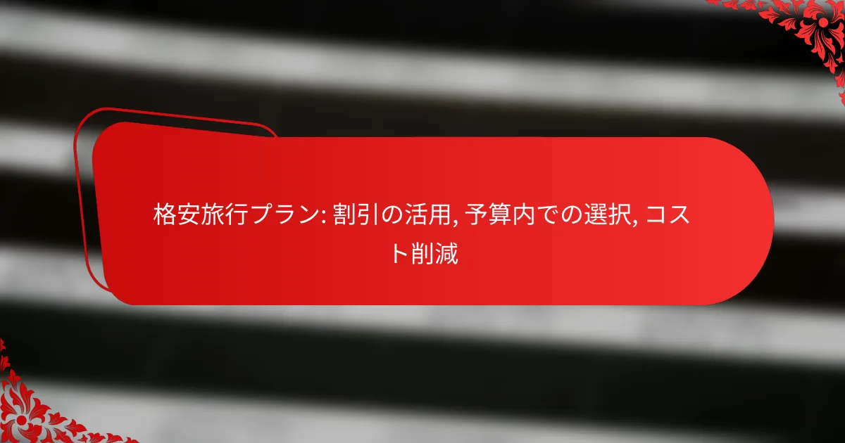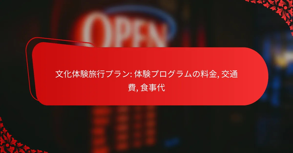文化体験旅行プランを比較するには、プログラムの内容、料金、交通費、食事代を考慮することが重要です。これにより、参加者は自分のニーズに最適なプランを選ぶことができます。
